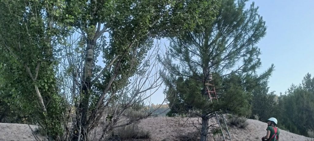 Este núcleo está compuesto de 6 cajas refugio modelo “Alto Tajo” de fabricación propia, instalándose en árboles cercanos entre sí, en concreto en 1 sabina (J. thurifera), 1 pino (Pinus nigra) y 4 chopos (Populus nigra).